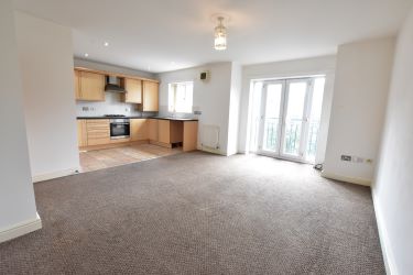 The accommodation comprises a spacious open-plan lounge/kitchen diner, two double bedrooms (one benefiting from an en suite), and a modern family bathroom. The property also features gas central heating, double glazing, and allocated parking space within a secure, barrier-controlled development.