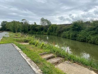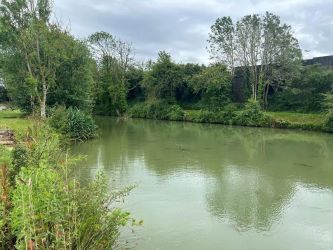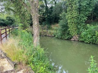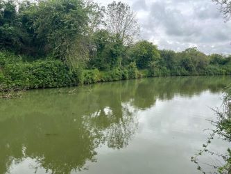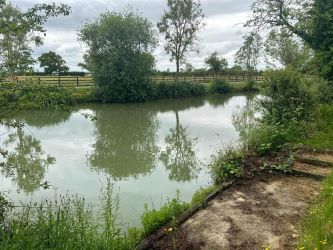 The pond was originally dug as a borrow pit, to make the ramps for the adjacent bridge. The pond itself is over a hundred years old. The pond has been dredged and desilted, it is between 4ft - 6ft deep, has 17 concreted fishing pegs and is stocked with common & mirror carp, roach, rudd, pike & tench.